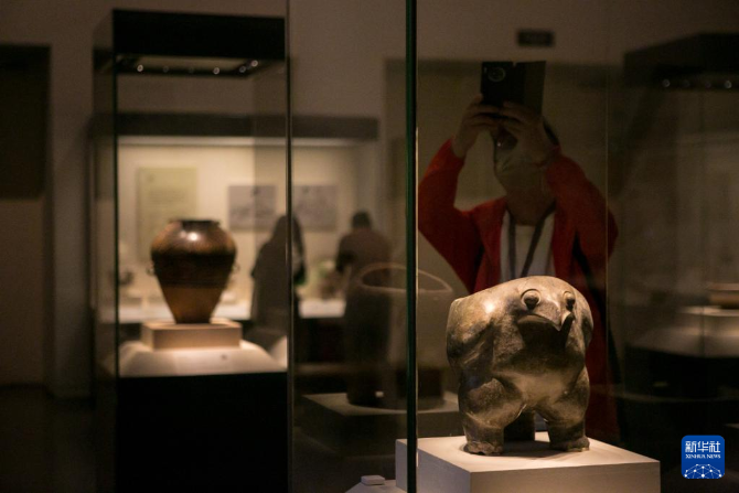 6月7日,觀眾在中國國家博物館拍攝“鷹形陶鼎”。新華社記者 李京 攝