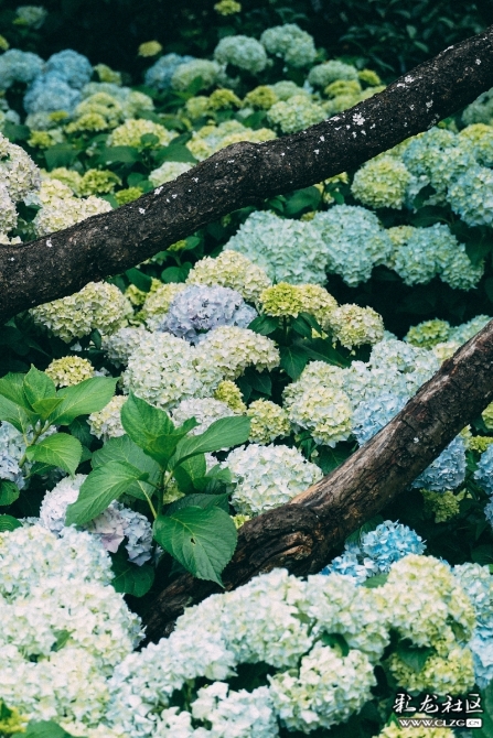 放眼望去,隨風(fēng)搖曳的繡球花叢,浪漫夢(mèng)幻。風(fēng)中飄起的淡淡香氣,讓人心曠神怡。
