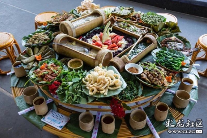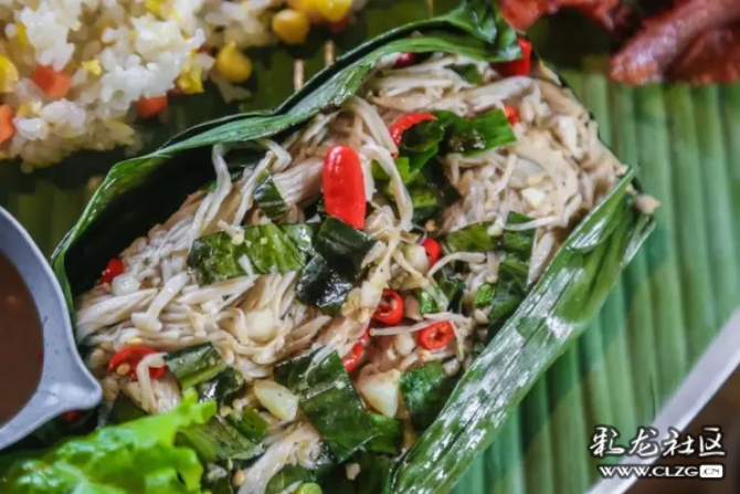 芭蕉葉是傣族飲食中重要的餐具,它不能食用,卻是餐飲烹飪中不能缺少的一味。除了充當(dāng)盛具,還可以用來(lái)包燒。