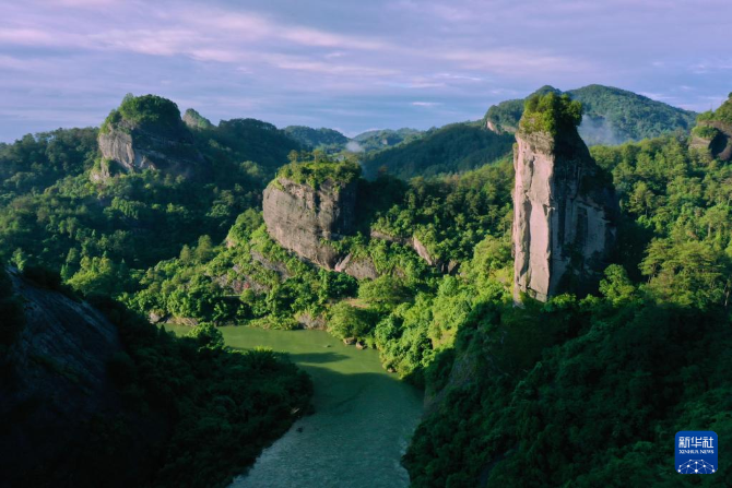 武夷山玉女峰(右)(6月6日攝,無人機照片)。新華社記者 姜克紅 攝