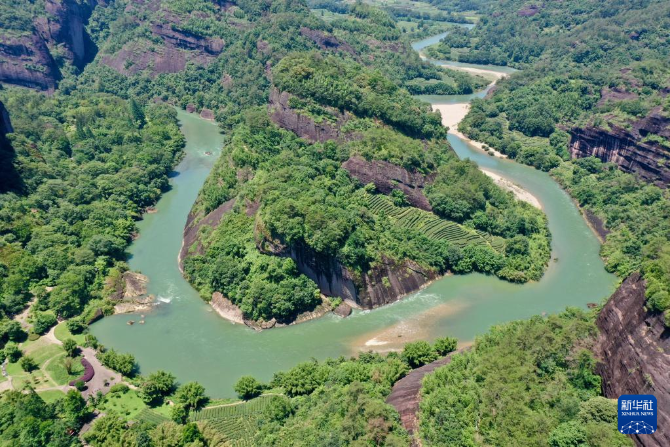 武夷山九曲溪景觀(6月6日攝,無人機照片)。新華社記者 姜克紅 攝