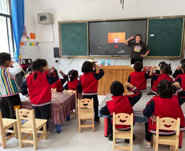 巴坡幼兒園老師高英正在帶領(lǐng)小朋友唱歌(蔡瑞 攝)