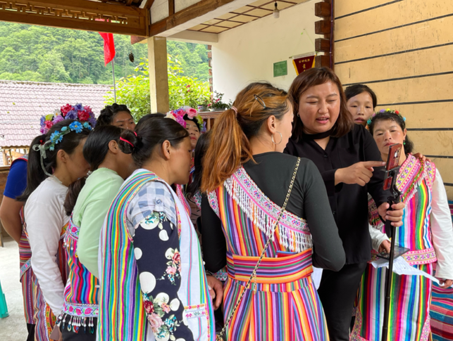 獨龍江鄉(xiāng)龍元村村民正在進行抖音直播(蔡瑞 攝)