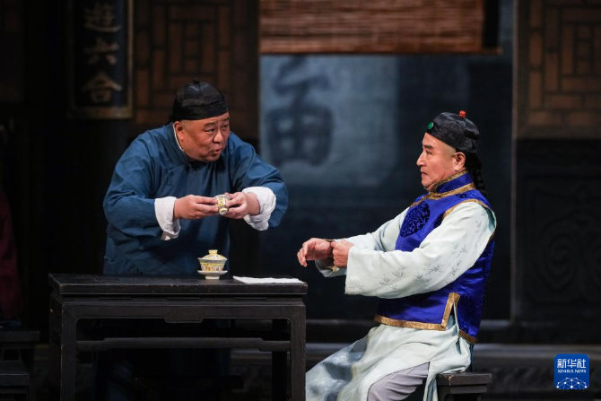 6月9日,演員梁冠華(左)、楊立新在臺上表演。新華社記者 彭子洋 攝