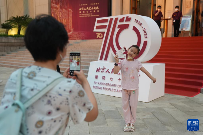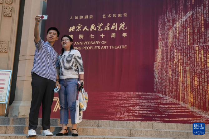 6月9日,市民在首都劇場前拍照留念。新華社記者 彭子洋 攝