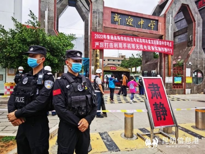 6月7日至9日,2022年全國(guó)普通高等學(xué)校招生統(tǒng)一考試舉行。昆明市共有14個(gè)考區(qū)、42個(gè)考點(diǎn)、1644個(gè)考場(chǎng),4.7萬余名考生參加考試。昆明公安全體民警輔警按照既定部署,在崗履職,全力以赴投入高考安保工作圓滿完成各項(xiàng)安保任務(wù)。