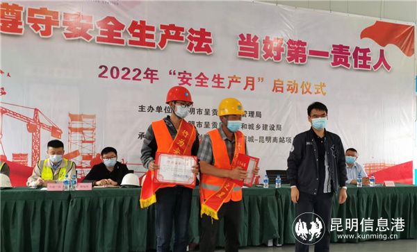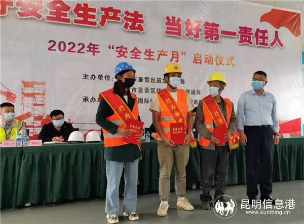 昆明信息港訊 記者勞學(xué)麗 通訊員張金棟 牟志君 6月9日,明市呈貢區(qū)應(yīng)急管理局、昆明市呈貢區(qū)住房和城鄉(xiāng)建設(shè)局主辦的“2022年安全生產(chǎn)月”啟動(dòng)大會(huì),在中國(guó)建筑一局(集團(tuán))有限公司鵬瑞利國(guó)際健康商旅城-昆明南站項(xiàng)目舉行,呈貢區(qū)在建工程項(xiàng)目代表、班組長(zhǎng)、工人等300余人參加。
