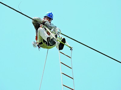 在暴雨肆虐的極端天氣里搶修線路、因高原反應在巡線途中流鼻血不止、在無人區(qū)斷了信號和外界失去聯(lián)系……記不清有多少個白日攀爬于鐵塔和帶電導線上進行檢修,記不清有多少個深夜挑燈夜戰(zhàn):導線斷股了,絕緣子損壞了,彈簧片脫落了……所有一切都是高空作業(yè),需要的不僅僅是過人的膽量和吃苦耐勞的精神,還要有高超的技藝。