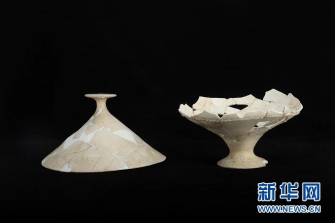 這是甘肅慶陽南佐遺址出土的白陶帶蓋圈足簋。(圖片由南佐遺址聯(lián)合考古隊提供)