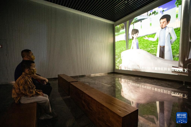 6月9日,在三峽文物科技保護(hù)基地,觀眾在科普課堂觀看文物科普視頻。新華社記者 黃偉 攝