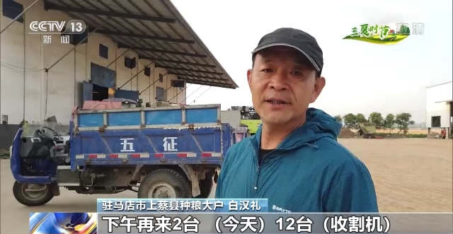 駐馬店市上蔡縣種糧大戶 白漢禮:今天上午10臺(tái)車,下午再來2臺(tái),12臺(tái)車,明天再增加2臺(tái)。