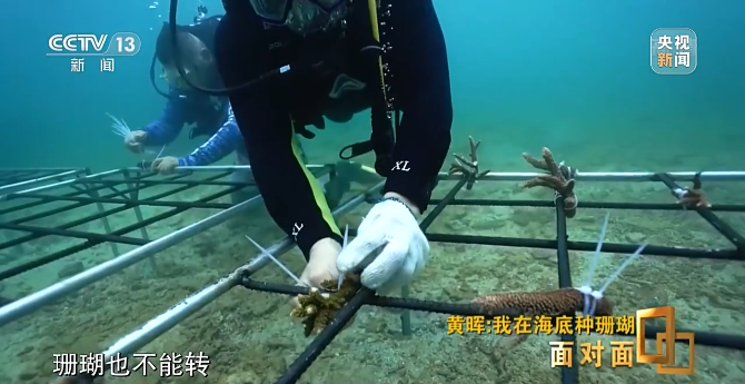 黃暉:有點(diǎn)像植樹造林,原理實(shí)際上是非常相似。比方說(shuō)植樹造林,種的樹不可能是拆東墻補(bǔ)西墻來(lái)的,必須在苗圃里頭大量去繁育,而且珊瑚也很有意思。有很多植物的特性,所以可以無(wú)性出芽生殖,最主要的環(huán)節(jié)首先要苗圃技術(shù),在苗圃上擴(kuò)大培育,獲得更多的珊瑚苗種,獲得了珊瑚苗種,把它種下去,底播到海床上去。因?yàn)樯汉魇歉街?,能讓它在海床上長(zhǎng)住,真正長(zhǎng)在珊瑚礁上。