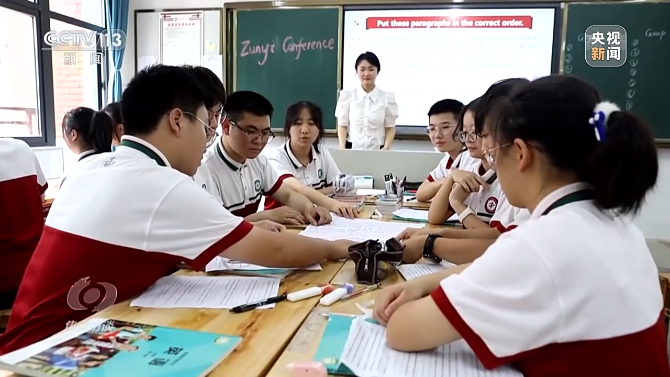 在遵義市第一中學(xué)高一(7)班,劉娜娜老師正在給學(xué)生們上一堂特殊的紅色故事英語(yǔ)課。課堂上播放的視頻是她前些天專(zhuān)門(mén)去遵義會(huì)議紀(jì)念館拍攝的。