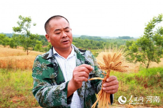楊長(zhǎng)太查看小麥成熟度。人民網(wǎng)記者 慎志遠(yuǎn)攝