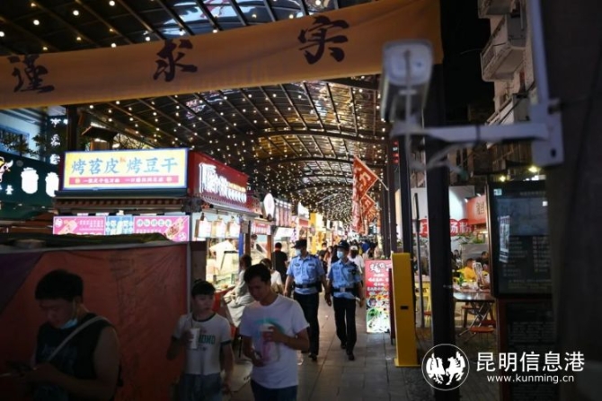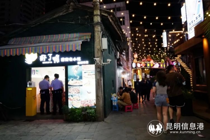 護(hù)航夜市經(jīng)濟,優(yōu)化營商環(huán)境。昆明市公安局五華分局護(hù)國派出所坐落在春城最繁華的地段之一南屏步行街,轄區(qū)內(nèi)有三市街、南屏步行街、正義坊等商圈,人流量較大、商戶眾多。特別是夜幕降臨時,商戶門前更是車水馬龍,游玩購物群眾你來我往、絡(luò)繹不絕。