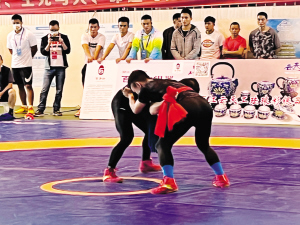 趙俊琨在摔跤項目男子格(彝族式)比賽中。