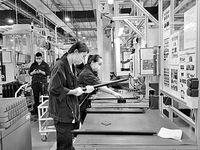 浙江平湖某外資企業(yè)工廠內(nèi),工人在生產(chǎn)汽車配件。新華社發(fā)