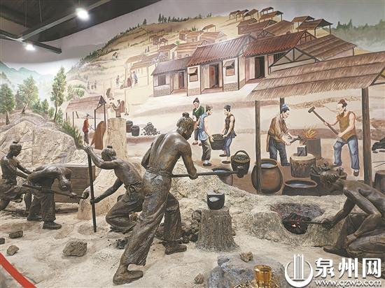 下草埔冶鐵遺址展示館用一組雕塑和壁畫,鮮活地還原出宋元冶鐵現(xiàn)場的情景。