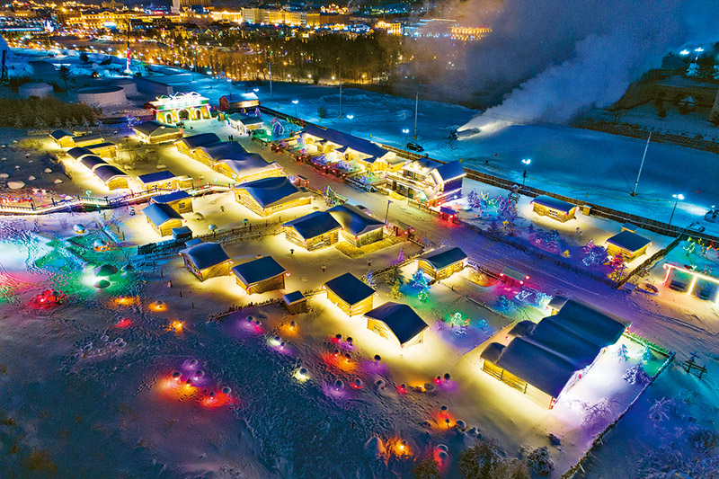 圖為阿爾山市郊的特色雪村夜景。 王正/攝