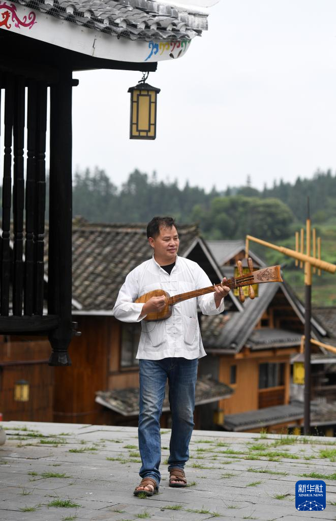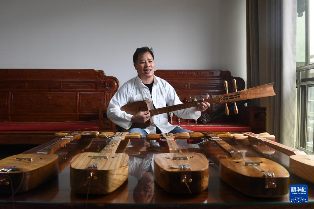 侗族琵琶歌是我國國家級非物質(zhì)文化遺產(chǎn)。今年49歲的楊龔家住廣西三江侗族自治縣林溪鎮(zhèn)冠洞村,是當(dāng)?shù)囟弊迮酶鑲鞒腥?,他不僅會編會唱侗族琵琶歌,還會制作侗族琵琶,平時一有時間就到附近村寨和學(xué)校教授侗族琵琶歌,讓侗族琵琶歌在三江侗族山鄉(xiāng)薪火相傳。(新華社 記者陸波岸)