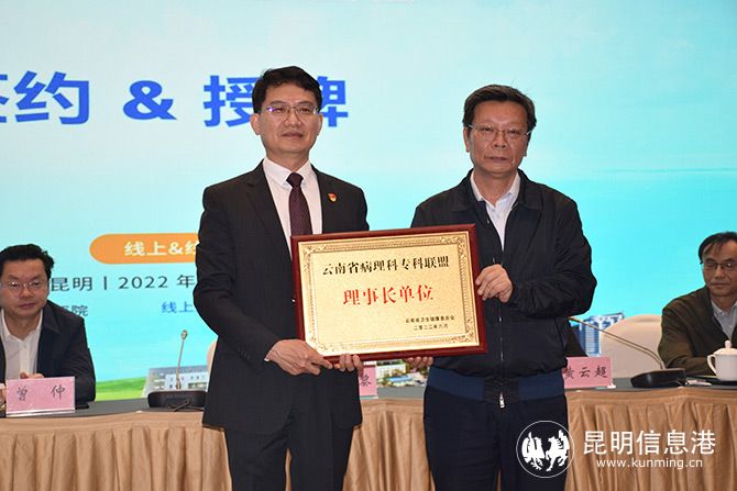云南省衛(wèi)生健康委向云南省病理科??坡?lián)盟理事長單位昆明醫(yī)科大學第一附屬醫(yī)院授牌。同時,作為云南省病理科??坡?lián)盟事長單位,曾仲院長向副理事長單位授牌。