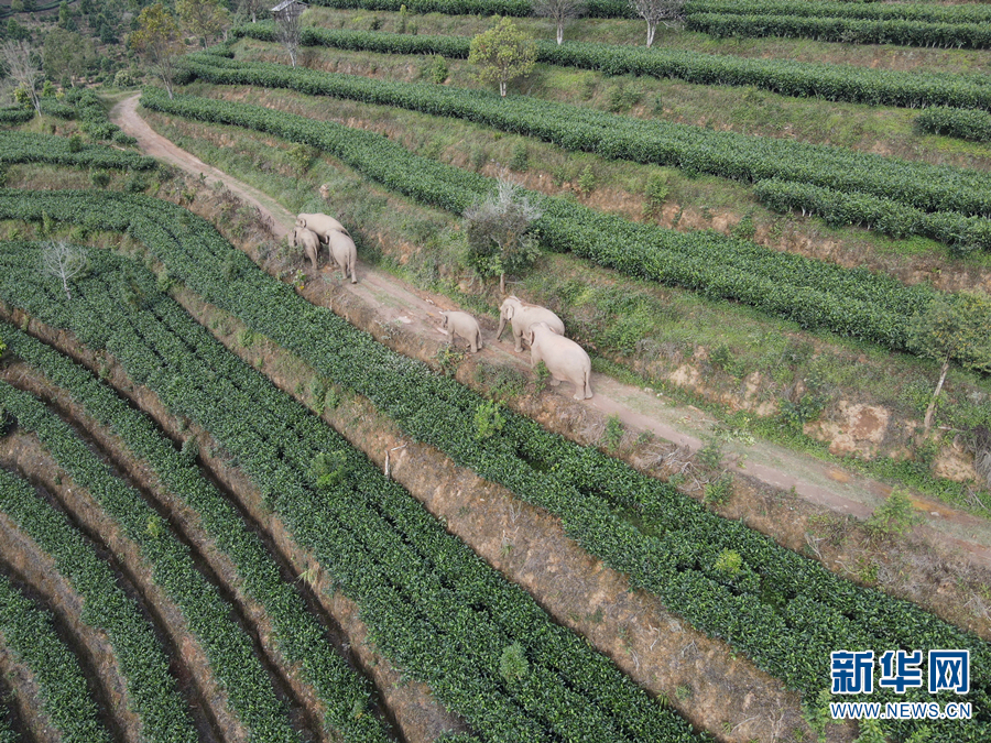 無人機(jī)拍攝到象群(2021年10月29日攝)。新華網(wǎng) 王思崎/攝