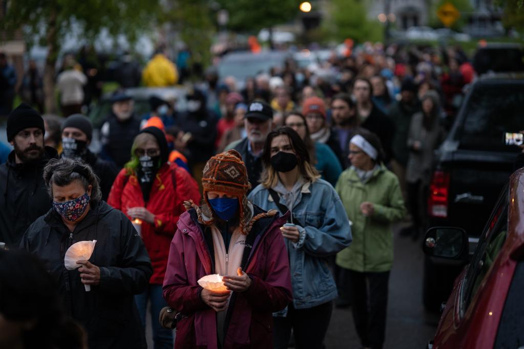 5月25日,在美國明尼蘇達州明尼阿波利斯市,人們參加哀悼活動,紀念死于白人警察膝下的非洲裔男子弗洛伊德遇害兩周年。新華社發(fā)(本·布魯爾攝)
