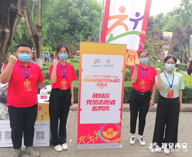 6月10日清晨,身為西安市碑林區(qū)基層單位的一名預備黨員,臧珂早早梳妝完畢,她穿上那件淡綠色的志愿者服裝,一路小跑趕到了長樂公園里的"西安市首屆社區(qū)運動會碑林區(qū)黨員志愿者服務崗"。另外三位同樣年輕的黨員志愿者賀悅、張嘉翔、王蓓蓓已經(jīng)在崗位上等她了,他們?nèi)说囊路际羌t色的,而且胸口都佩戴著閃亮的黨徽,這表明,他們都已經(jīng)是光榮的共產(chǎn)黨員了。
