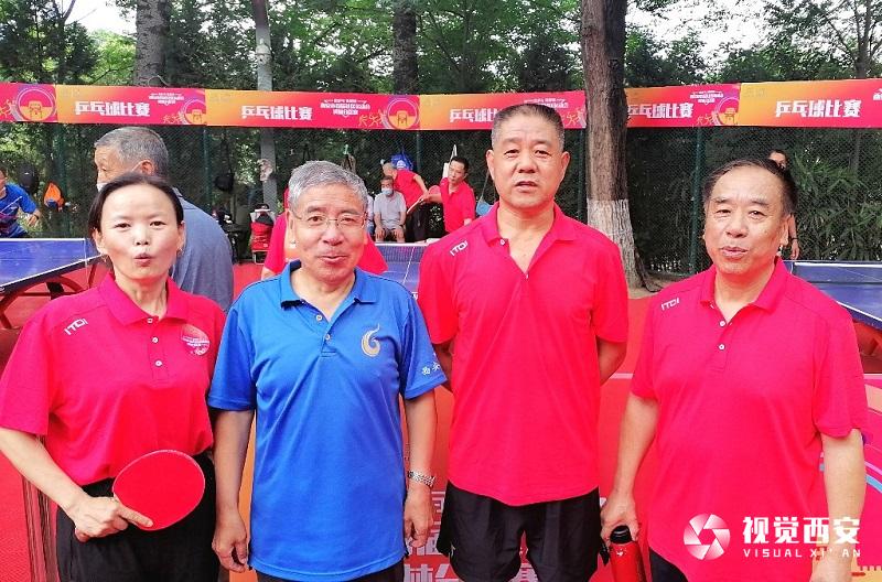 太乙路街辦交大社區(qū)乒乓球隊在李智民(左二)的帶領下,為健康快樂而參賽。