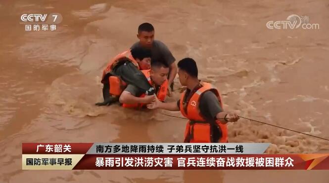 廣東韶關(guān):暴雨引發(fā)洪澇災(zāi)害 官兵連續(xù)奮戰(zhàn)救援被困群眾