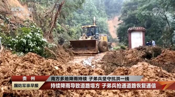貴州:持續(xù)降雨導(dǎo)致道路塌方 子弟兵搶通道路恢復(fù)通信