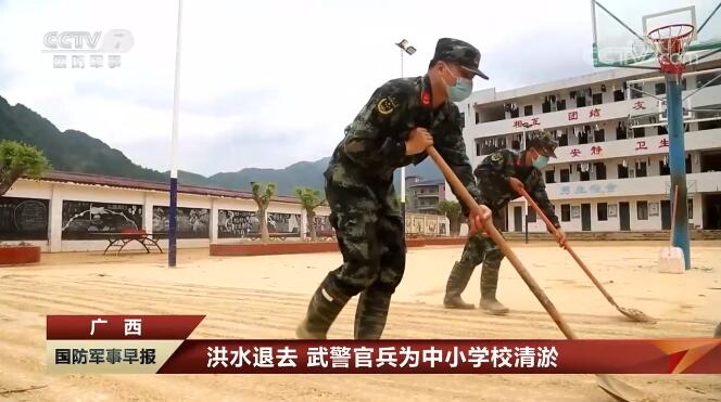 廣西:洪水退去 武警官兵為中小學(xué)校清淤