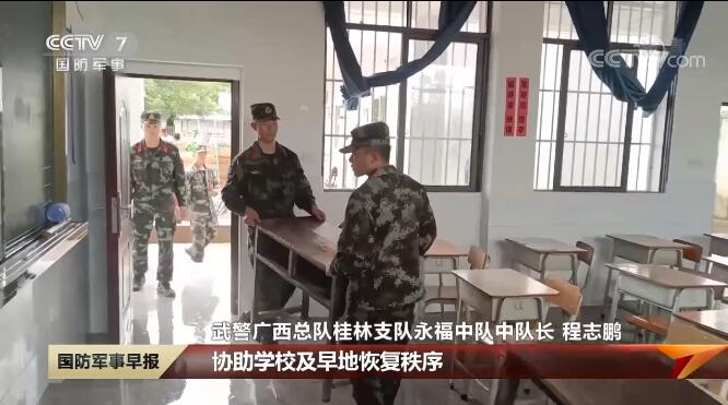 武警廣西總隊桂林支隊永福中隊中隊長 程志鵬:協(xié)助學(xué)校及早地恢復(fù)秩序,學(xué)生也能夠及時復(fù)課復(fù)學(xué)。