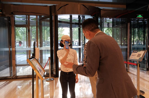 建外街道各商務(wù)樓宇所有人員進(jìn)入的卡口,包括地庫、車庫、專門卸貨區(qū)域等都張貼了二維碼,每個(gè)卡口的二維碼都不重復(fù),確保場所掃碼人員信息精準(zhǔn)?!拔覀兠總€(gè)口都嚴(yán)格執(zhí)行掃碼、測溫、查證措施,不會(huì)因?yàn)槿肆髁可俣疁p配’,這既是疫情防控的要求,也是為白領(lǐng)們的健康著想?!币晃粯怯钗飿I(yè)管理人員說道。