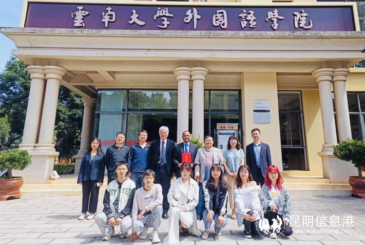 云南大學(xué)外國語學(xué)院領(lǐng)導(dǎo)、師生與蘇噶特先生合影留念