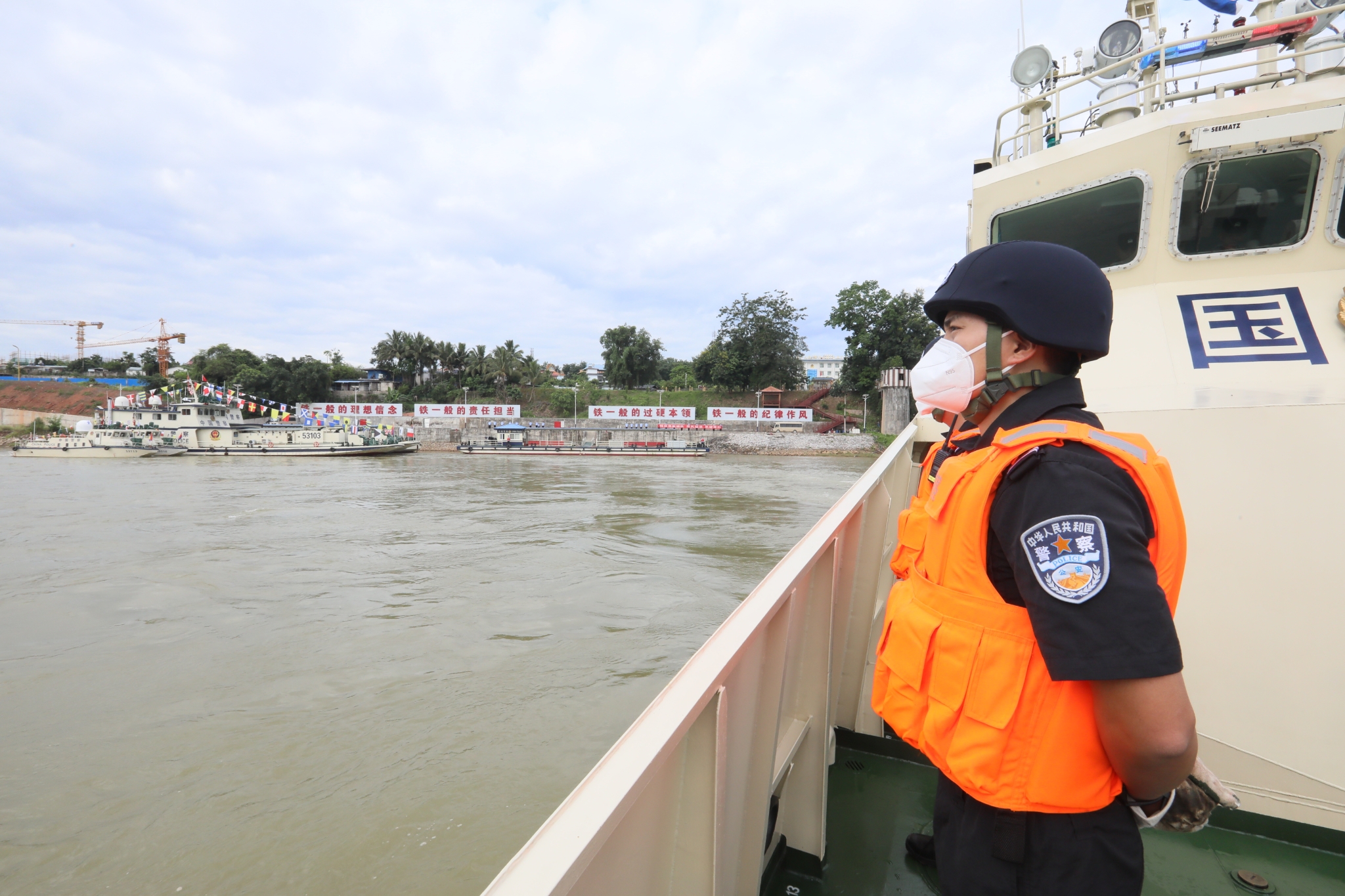 6月21日上午9時,在西雙版納傣族自治州景哈碼頭,參加第118次中老緬泰湄公河聯(lián)合巡邏執(zhí)法行動的中方執(zhí)法隊員整裝待發(fā),隨著啟航指令的下達(dá),于2021年12月新列編的新型指揮艇53107艇拉響汽笛,中方執(zhí)法隊員有序登艇,此次聯(lián)合巡邏執(zhí)法行動正式啟動。