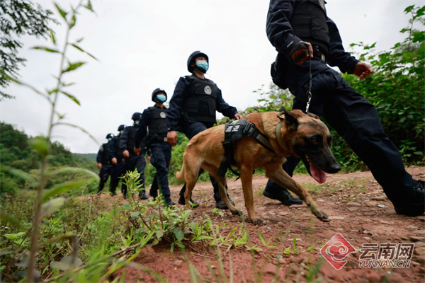 云南普洱邊境管理支隊民警攜警犬開展邊境巡邏