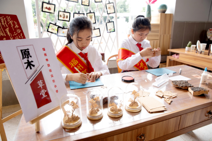 圖為福州市鼓樓實驗小學學生正在做木制工藝。(受訪者供圖)