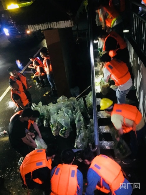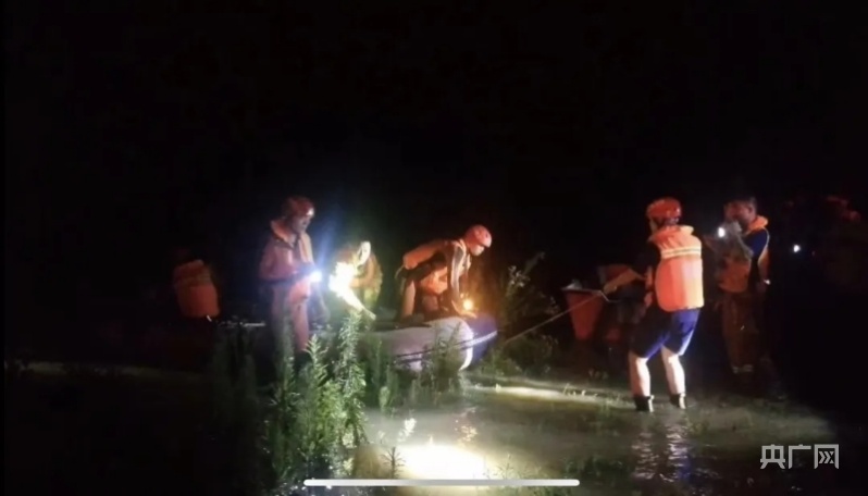 6月20日晚22點(diǎn),消防救援支隊(duì)抗洪搶險(xiǎn)突擊隊(duì)、鸕鶿鄉(xiāng)鄉(xiāng)村干部和鸕鶿派出所干警齊心協(xié)力開展救援工作。(央廣網(wǎng)發(fā) 程萬海/攝)