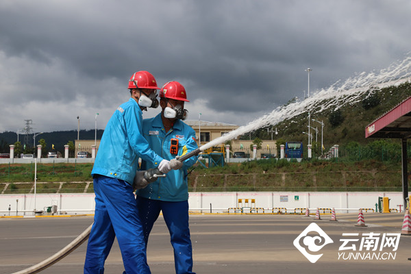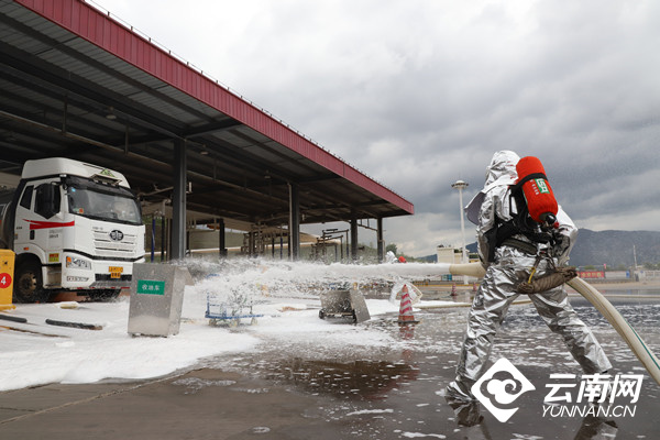 6月22日上午,在安寧草鋪街道中國(guó)石油西北銷(xiāo)售云南分公司車(chē)輛裝油現(xiàn)場(chǎng),隨著工作人員的一聲呼救,危險(xiǎn)化學(xué)品車(chē)輛泄漏火災(zāi)事故綜合應(yīng)急演練正式開(kāi)始。