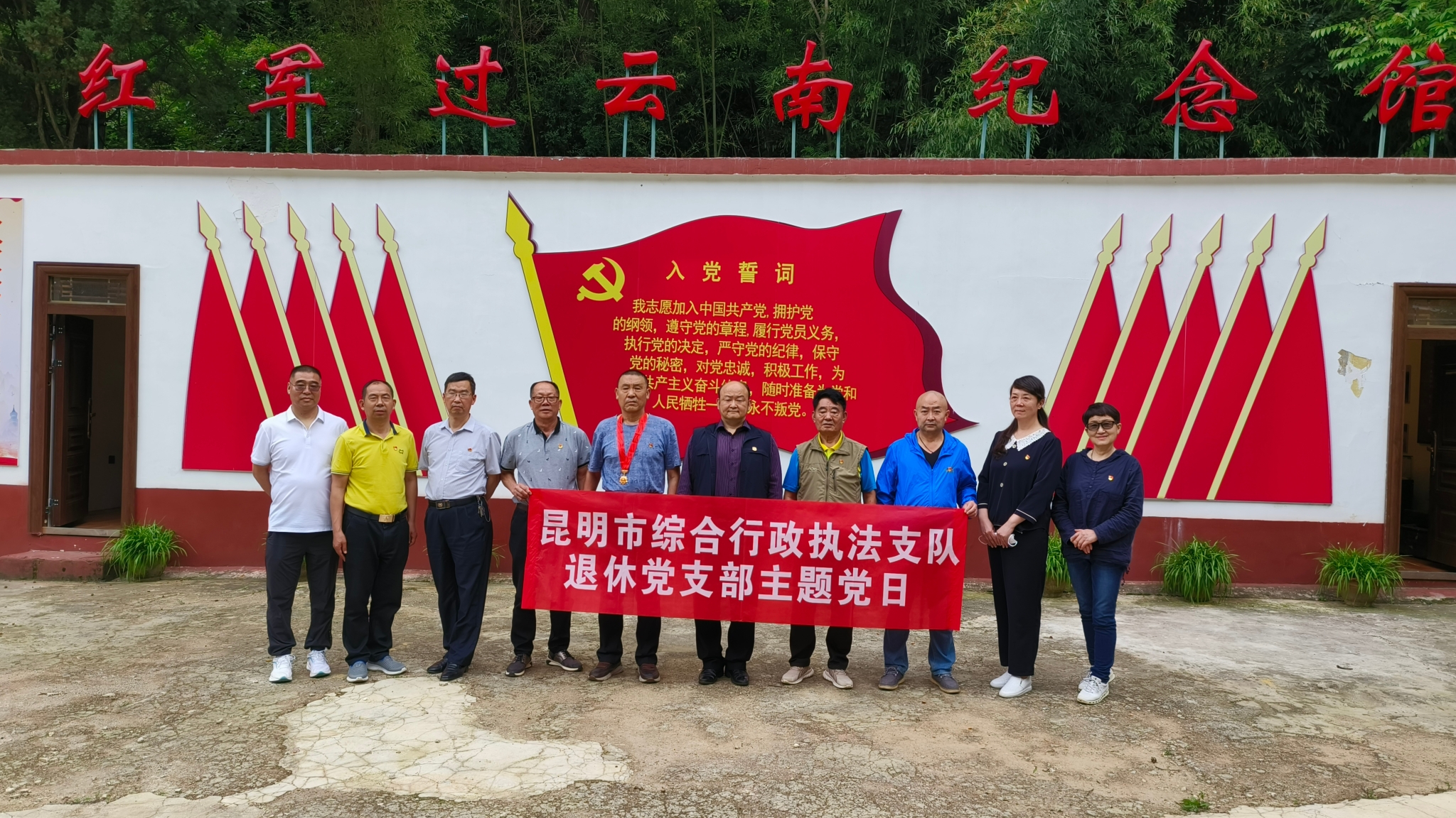 昆明信息港訊 記者楊雁 在“七一”建黨節(jié)到來之際,6月22日,昆明市綜合行政執(zhí)法支隊退休黨支部主題黨日活動舉行,在昆明市綜合行政執(zhí)法支隊政委朱靖文和支隊退休黨支部書記李惠先的帶領(lǐng)下,支隊退休老黨員們來到錫伯龍紅色文化莊園學(xué)習(xí)、觀摩。退休黨員們紛紛表示,雖然已經(jīng)退休,但退休不褪色,今后仍將繼續(xù)發(fā)揮余熱,把黨的精神和文化傳承給下一代、感染全社會。