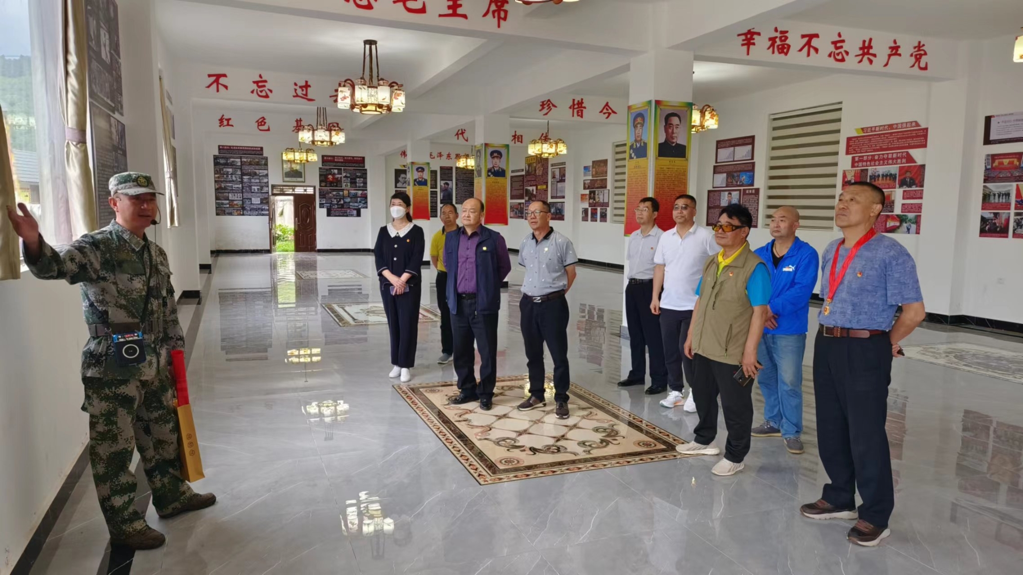 支隊退休黨支部書記李惠先說:“今天是昆明市綜合行政執(zhí)法支隊退休黨支部成立以來,第一次來到紅色莊園教育基地舉行主題黨日活動,本次活動以‘不忘初心、不負(fù)韶華、發(fā)揚(yáng)傳統(tǒng)、永跟黨走’為主題,通過帶領(lǐng)支隊退休黨員走進(jìn)錫伯龍紅色文化莊園參觀、學(xué)習(xí),進(jìn)一步號召黨員同志恪盡黨員職責(zé),不忘初心,堅定永遠(yuǎn)跟黨走的信念,提高退休黨員政治責(zé)任感,退休不褪色。”