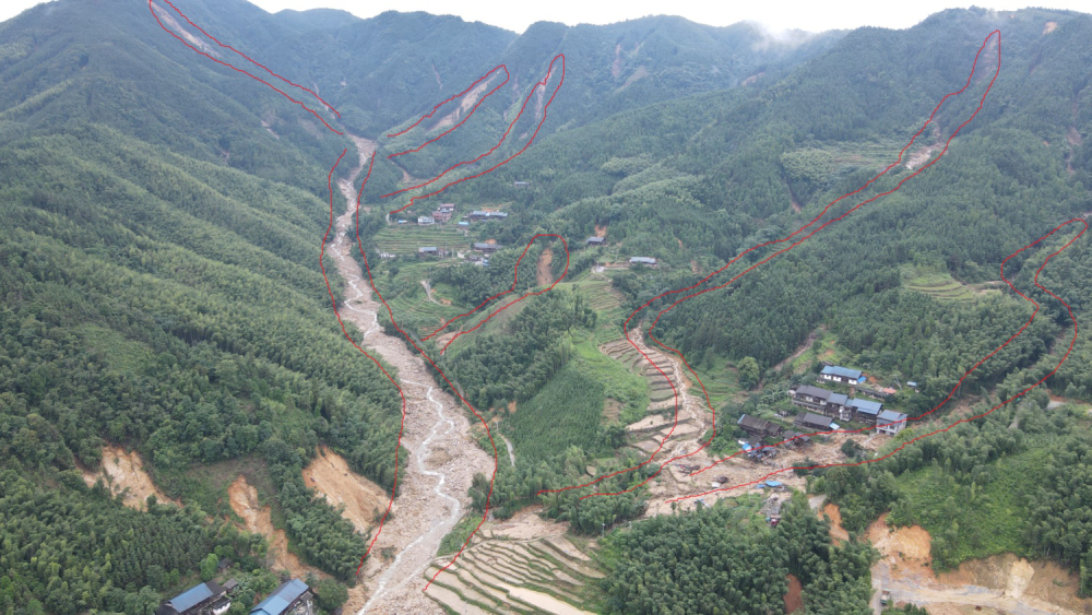 九溪村溝尾屯和嶺背屯泥石流災(zāi)后全景