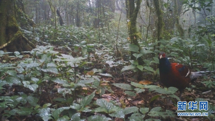 紅外相機(jī)拍攝到的黑頸長(zhǎng)尾雉。新華網(wǎng)發(fā)(保山龍陵小黑山省級(jí)自然保護(hù)區(qū)供圖)