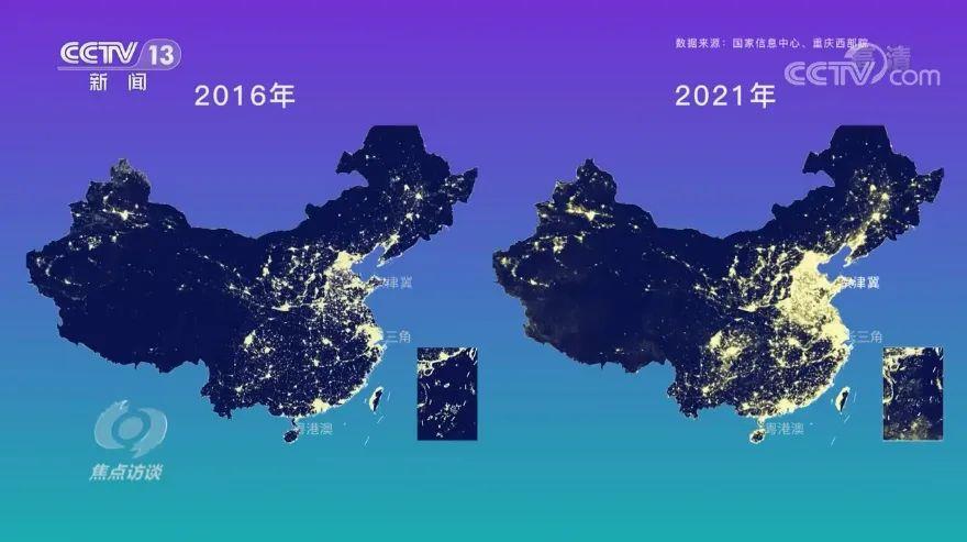 △5年間,中國(guó)經(jīng)濟(jì)體量穩(wěn)步增長(zhǎng),而體現(xiàn)經(jīng)濟(jì)活躍度的燈光帶,向著粵港澳大灣區(qū)、長(zhǎng)三角、京津冀等幾個(gè)區(qū)域集中呈明顯特點(diǎn)。(國(guó)家信息中心供圖)