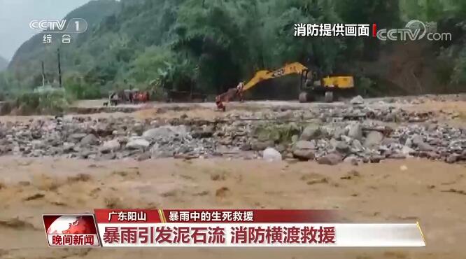 廣東陽山:暴雨引發(fā)泥石流 消防橫渡救援