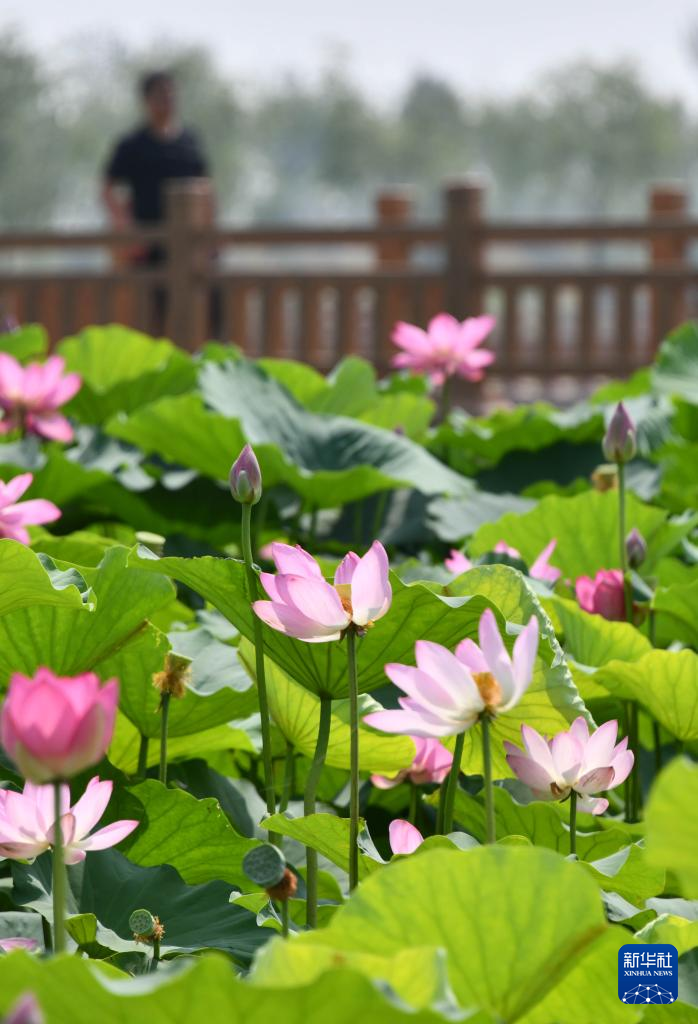 6月21日,在山東省曹縣黃河故道國(guó)家濕地公園,游客觀賞荷花。