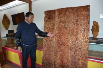 “在這期間,通過我的指導(dǎo),迅速成長了一批木雕人才,原來不會雕的學(xué)會了雕刻,原來雕得不好的技術(shù)也越來越嫻熟,我自己賺到了錢也帶出了一些傳統(tǒng)木雕的人才?!壁w振金說,從1993年到1996年生意相當(dāng)好,除了長年在古城里的12個員工外,在老家大具還有100多人除了農(nóng)忙時節(jié)都在雕刻他的產(chǎn)品,占據(jù)了當(dāng)時麗江木雕市場的絕對份額,在木雕界他也有了較高的聲譽(yù)。