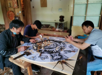 到后來,隨著生意越來越好,十多個員工加班加點(diǎn)還是滿足不了市場需求。為此,趙振金開始發(fā)動組織大具鄉(xiāng)其他村的村民開始做木雕,圖稿由他設(shè)計提供,村民們買材料自己雕,事先確定價格,雕好就送到店里,當(dāng)場結(jié)算付款,從不拖欠貨款,甚至遇到家里辦事急需用錢的,趙振金也會預(yù)支給他們錢。后來,全村100多戶都被他帶動起來,村民們雕刻的產(chǎn)品源源不斷地送到店里。