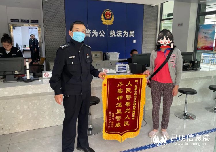 滇池路派出所民警經(jīng)調(diào)取視頻監(jiān)控,發(fā)現(xiàn)錢包被群眾惠先生撿到。經(jīng)對接,惠先生將錢包歸還給了柴女士。為表達(dá)謝意,柴女士當(dāng)日便給民警送來一面寫著“人民警察為人民、辦案神速顯警威”的錦旗。